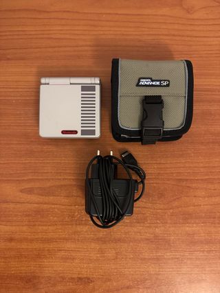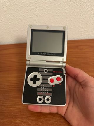 Game Boy Advance SP edición especial NES, una de las versiones más buscadas por coleccionistas. - Diseño inspirado en la mítica consola clásica de Nintendo. - Incluye cargador original - También incluyo una fundita para llevartela contigo a cualquier parte (en ella puedes guardar un juego). Funciona perfectamente; tanto los botones, como los gatillos, sonido, iluminación de la pantalla, visagra, lector de cartuchos... Tiene algún rasguño en la carcasa, pero para los años que tiene y, comparándola con otras Gameboy que rondan por aquí, está en muy buen estado. No envío. Venta en Bilbao y alrededores. Para más info pregúntame.