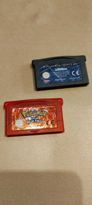 Dos cartuchos de juegos para Game Boy Advance, en perfecto funcionamiento. - Pokémon Rojo Fuego Original (Edición Española). - Spider-Man 2 (Activision, 2004).