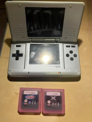 Consola Nintendo DS Fat plateada + dos juegos. La DS enciende y carga los juegos DS y Game Boy correctamente. Falla la pantalla de arriba (no se ve nada) y el táctil va regular. - Juegos incluidos: Narnia y X-Men. (X-Men con caratula de DS) - SÍ Incluye cargador (no original) puerto USB - SIN lápiz para el táctil. Podría ser para piezas