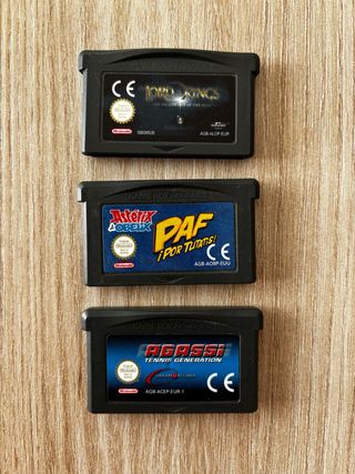 Pack de tres cartuchos de juegos para Game Boy Advance. - The Lord of the Rings: The Fellowship of the Ring - Astérix y Obélix: ¡Por Tutatis! - Agassi Tennis Generation