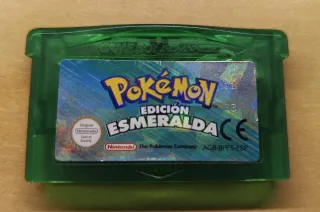 Cartucho de videojuego Pokémon Edición Esmeralda original para Game Boy Advance, en muy buen estado y con pila nueva. - Cartucho de color verde. - Juego de rol (RPG).