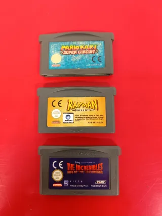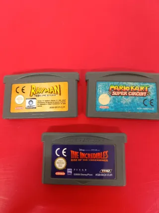 Lote de 3 cartuchos de juegos para Game Boy Advance. - Mario Kart: Super Circuit. 12€ - Rayman: Hoodlum's Revenge.12€ - The Incredibles: Rise of the Under-Miner. 8€. Acepto ofertas . No tengo la cajita . Se puede vender por separado