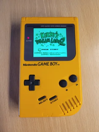 Consola portátil clásica Nintendo Game Boy en color amarillo con pantalla ips funnyplaying ( varias paletas de colores y modo ips o dotmatrix) Carcasa, botones y gomas totalmente originales. Con el regulador de voltaje instalado adecuado para que la pantalla ips no de problemas ( ultima foto). Juego no incluído ( solo para mostrar el funcionamiento de la pantalla). Funciona todo a la perfección. Tags: atari, master system, nes, wii, u, 64, zelda, nes, mario, megaman, castlevania, 3ds, 2ds, ds, xl, ps2, playstation, color, gameboy, sp, advance, pocket, micro, light, game gear, linx, psp, psvita, super nintendo, mega driv
