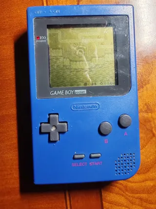 Consola portátil clásica. - Modelo Game Boy Pocket. - Color azul vibrante. - Pantalla retroiluminada para jugar en cualquier lugar.