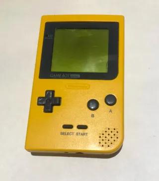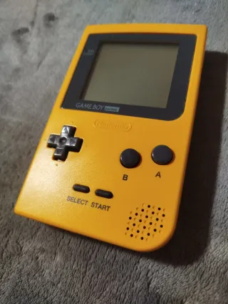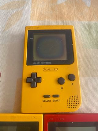 Game boy Pocket amarillo clásica, cómo se puede apreciar la sonia está como nueva, lee bien los cartuchos los botones y todo, el único incomveniente es la pantalla, que tiene unos pixeles muertos pero por aliexpress el cambio son 30 pavos y se queda in console super bonita para exponer