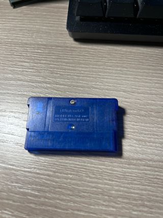 Cartucho de videojuego Pokémon Zafiro para Game Boy Advance. - Edición Zafiro. - Cartucho azul. - Sello de Nintendo.