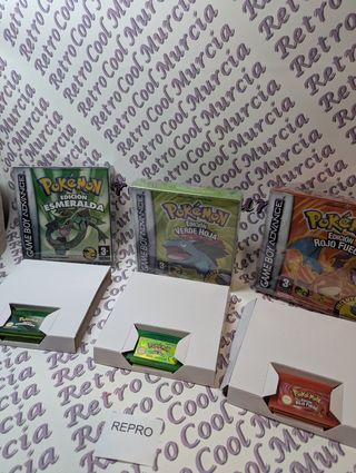 Pokemon (R) Pokemon amarillo Pokemon rojo fuego Pokemon crystal Pokemon verde hoja Pokemon esmeralda (PREGUNTAR POR STOCK) Precio 29,90€ la unidad Se incluye caja, insert, cartucho y funda pet 📦HAGO ENVÍOS 📦
