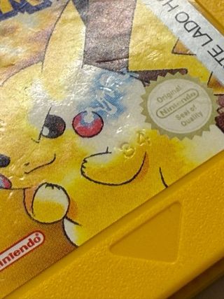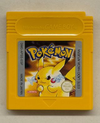 Cartucho de juego Pokémon Amarillo para Game Boy. - Cartucho amarillo. - Incluye etiqueta con el logo de Nintendo y el sello de calidad. - Fabricado en Japón.