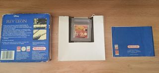 Juego de Game Boy: El Rey León de Disney. El juego y su caja están en buenas condiciones, aunque muestran señales normales de uso. Incluye el cartucho, la caja y el manual de instrucciones. - Versión Española. - Clásico juego de plataformas.El juego de la imagen es "El Rey León" para Game Boy, un videojuego de plataformas lanzado en 1994 basado en la película de Disney del mismo nombre. En el juego, el jugador controla a Simba, el león protagonista, a través de diferentes niveles basados en la película.Envío previo pago bizum o transferencia protegido con burbujas.