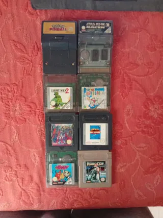 Colección de 8 videojuegos para Game Boy. - Pokémon Pinball. 12€ - Star Wars: Episode I Racer. 12€ - Army Men 2. 12€ - Super Mario Bros. Deluxe.10€ - Dragon Quest .10€ - Battleship.10€ - Powerpuff Girls: Mojo Jojo.10€ - Robocop. 15€