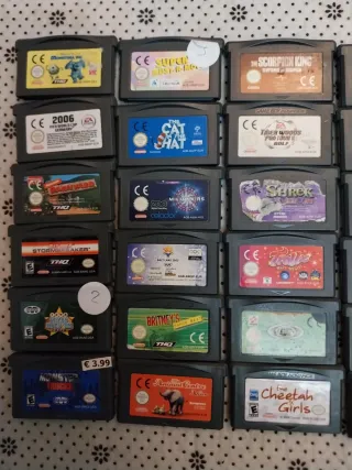 Lote de 36 cartuchos de juegos para Nintendo Game Boy Advance. - Incluye una variedad de títulos populares. - Cartuchos en buen estado. - Los juegos no son versiones en español.