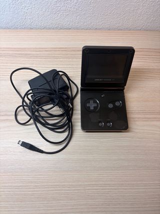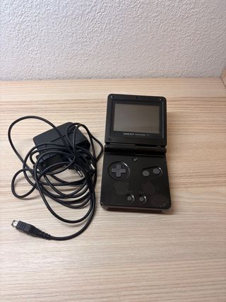 Consola portátil Game Boy Advance SP en color negro. Incluye cargador. - Diseño plegable. - Botones de control. - Pantalla integrada.