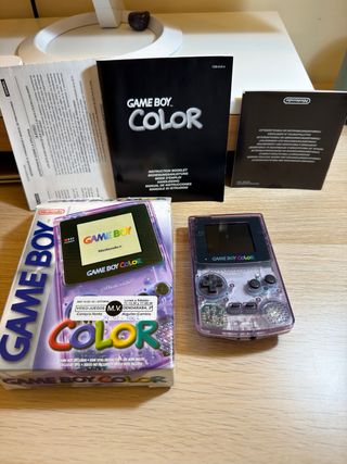 Pack completo de la consola Game Boy Color. Cuidado con el cariño de una madre que guarda durante 25 años un tesoro de su hijo. Difícil encontrar una unidad asi. - Incluye la consola. - Caja original. - Manual de instrucciones en varios idiomas.