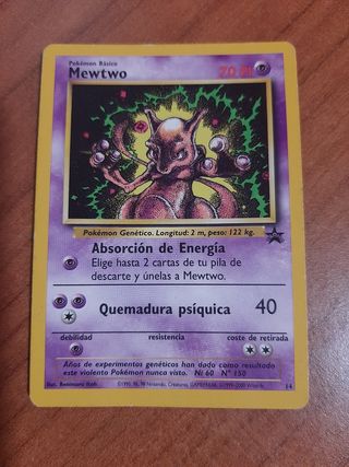 Vendo carta promocional no holográfica de Mewtwo, la cual venía con el VHS de Pokémon: La película, lanzada a la venta el año 2000 en España. Ilustración de Benimaru Itoh.