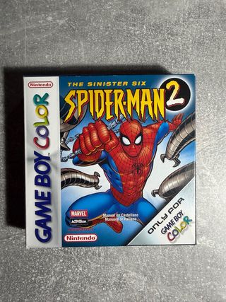 Videojuego Spider-Man 2: The Sinister Six para Game Boy Color pal/españa completo IMPORTANTE la caja presenta dos rajas por detrás y están pegadas,ver fotos,por lo demás se encuentra en buen estado.