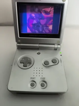 Consola portátil Game Boy Advance SP en color plateado y blanco. Incluye cargador. Modelo AGS-001 - Pantalla retroiluminada. - Diseño plegable. - Funciona a la perfección
