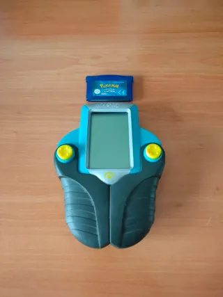Cartucho de Pokémon Zafiro para Game Boy Advance, en buen estado. Se incluye como regalo una consola Hasbro Pokémon Battle Trainer, también en buen estado.