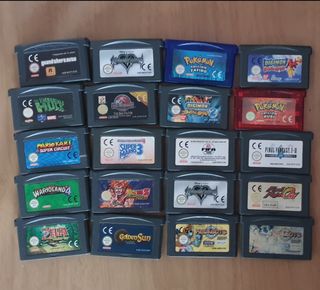 Lote de 16 cartuchos de juegos para Game Boy Advance. - Grand Theft Auto - Kingdom Hearts Chain of Memories - Pokémon Zafiro - Digimon Racing - The Incredible Hulk - Jurassic Park III: The DNA Factor - Digimon Battle Spirit 2 - Pokémon Rubí - Mario Kart: Super Circuit - Super Mario Advance 3: Mario Bros. 3 - FIFA 2004 - Final Fantasy I & II: Dawn of Souls - Wario Land 4 - Dragon Ball Z: Buu's Fury - Kingdom Hearts: Chain of Memories - All-Star Baseball 2005 - The Legend of Zelda: The Minish Cap - Golden Sun - Megabots - Astro Boy Omega Factor
