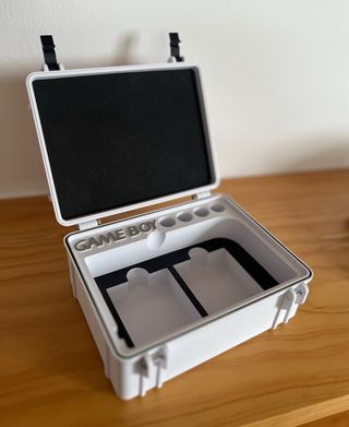 Caja protectora personalizada impresa en 3D diseñada para guardar de forma segura tu consola y accesorios. • Compatible con la consola y 4 cartuchos de Game Boy / Game Boy Color • Espacio dedicado para 4 pilas AA • Interior revestido con acolchado de espuma EVA para protección contra impactos • Inserto de TPU que ayuda a evitar el movimiento y los arañazos en la superficie Compacta, resistente y diseñada para mantener tu consola portátil y juegos protegidos durante el almacenamiento o el transporte. Nota: La consola, los cartuchos de juego y las pilas que aparecen en las fotos son solo para fines ilustrativos y no están incluidos