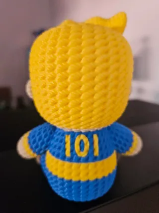 Adorable muñeco tejido del personaje Vault Boy de Fallout. Su diseño imita la textura del punto. - Diseño inspirado en Vault Boy. - Textura simulando tejido - Colores azul y amarillo característicos.