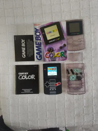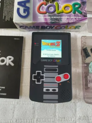 Consola portátil Game Boy Color incluye su carcasa transparente color morado. Incluye manuales y caja, tiene puesta una carcasa Edición especial de NES y pantalla de color retroiluminada con ajuste de luz táctil, la carcasa solo tiene 3 marcas de los tornillos por lo demás está todo bien. PRECIO NO NEGOCIABLE, ESTA MUY AJUSTADO CON TODO LO QUE INCLUYE NO SE REBAJA MAS SOLO LA CONSOLA CON PANTALLA SE CENDE A MAS DE 100€ O 120€. - Caja original. - Manual de instrucciones en varios idiomas. - Carcasa transparente.