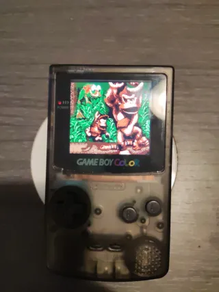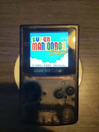 Consola portátil Game Boy Color con carcasa negra modificada. Disfruta de tus juegos clásicos favoritos con un toque personal. - Carcasa negra translúcida. - Pantalla con colores vibrantes. Extras: cartucho multi juegos con juegos gbc y GB, 2 juegos originales, carcasa y pantalla original, estuche para guardar y lupa con luz.