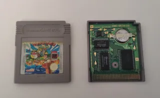 Conjunto de cuatro cartuchos de juegos para Game Boy. - Juego 1: Harvest Moon - Juego 2: Tenjin Kaisen - Juego 3: Parodius Da! El 4 es el de dragon quest 1 y 2, pero no es un juego original, parece un cartucho regrabable, pero desconocemos exactamente lo que es. Mire las fotos y compre solo si entiende lo mencionado anteriormente.