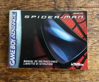 Manual de instrucciones para el juego Spider-Man de Game Boy Advance. - Título del juego: Spider-Man. - Plataforma: Game Boy Advance. - Idiomas: Español, Italiano.
