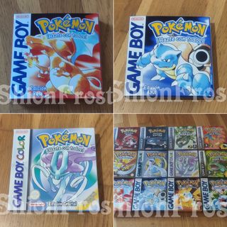 Colección de cajas de videojuegos Pokémon para Game Boy, Game Boy Color y Game Boy Advance. - Pokémon Edición Roja - Pokémon Edición Azul - Pokémon Edición Especial Pikachu (Amarilla) - Pokémon Edición Rojo Fuego - Pokémon Edición Oro - Pokémon Edición Plata - Pokémon Edición Cristal - Pokémon Edición Verde Hoja - Pokémon Edición Zafiro - Pokémon Edición Esmeralda - Pokémon Edición Rubí