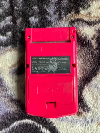 En la pegatina pone Cgb-001 Consola portátil clásica en color rosa. Ideal para coleccionistas y amantes de los videojuegos retro. - Pantalla a color. - NO Incluye el juego Pokémon Pinball. - Tapa trasera de pilas PERO no engancha bien (con celo como solución) La consola funciona pero muestra desgaste por el tiempo que tiene