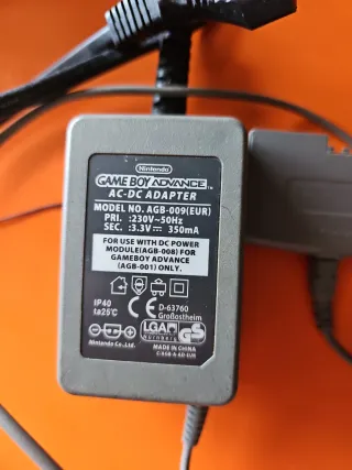 Adaptador de corriente AC-DC para Game Boy Advance. - Funcionando perfectamente - Longitud cable 3m - Modelo: AGB-009(EUR). - Entrada: 230V~50Hz. - Salida: 3.3V 350mA.