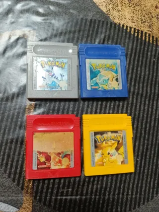 Pack de cuatro cartuchos de juegos Pokémon para Game Boy. Funcionan todos perfectamente y originales. - Pokémon Plata - Pokémon Azul - Pokémon Rojo - Pokémon Amarillo