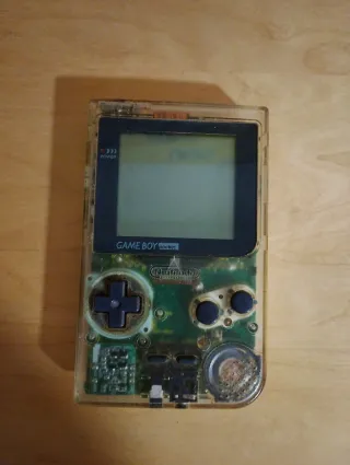 Consola portátil Game Boy Pocket con carcasa transparente. - Diseño único y llamativo. - Botones de control clásicos.