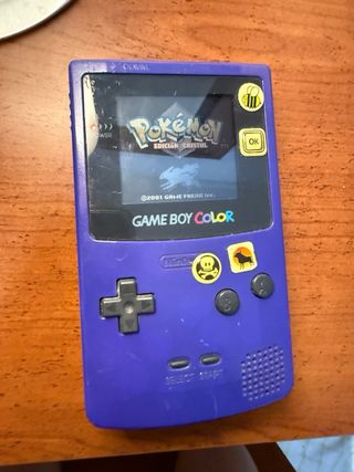 Vendo Game Boy Color en color morado que incluye el icónico juego Pokémon Edición Cristal. Le falta la tapa de las pilas pero funciona correctamente como podeis ver en las imagenes. La vendo por motivos personales y no por gusto, ya que tiene un gran valor sentimental para mi. Nota: Una vez comprada NO se devuelve el dinero. Pago: Efectivo (preferente) o Bizum