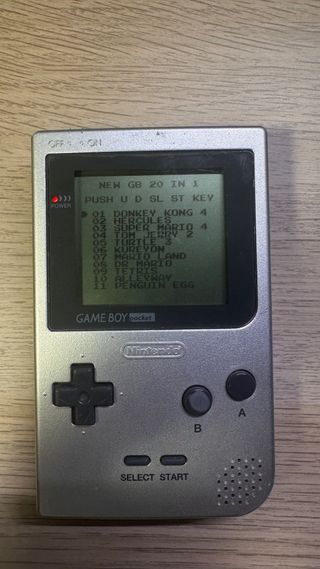 🎮 Vendo Nintendo Game Boy Pocket original (modelo MGB-001) en color plateado. ✅ Funciona correctamente, pantalla y sonido OK (ver fotos). 🕹️ Incluye cartucho GB 20 in 1 con varios juegos clásicos (Mario, Tetris, Donkey Kong, Dr. Mario, etc.). ✨ Consola original Nintendo, ideal para coleccionismo retro o para jugar. 📦 Estado estético bueno con marcas normales del uso y del paso del tiempo. 🔋 Funciona con pilas (incluidas). 📦 Entrega en mano o envío por Wallapop. ❌ No cambios. Game Boy Pocket Nintendo retro consola vintage GB coleccionismo