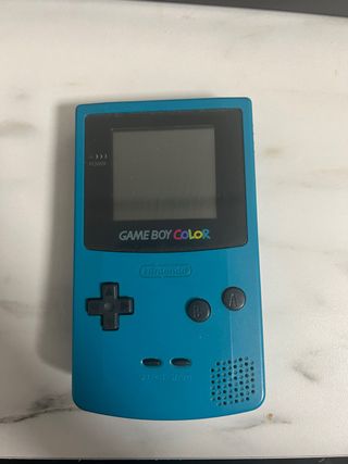 Consola portátil Game Boy Color en color azul. - Pantalla a color. - Botones de control direccional. - Botones A y B. - Botones Select y Start. - Altavoz integrado.