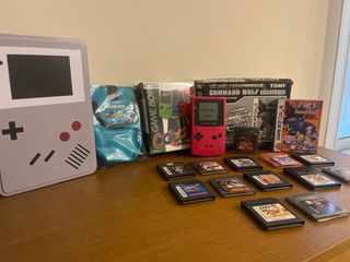 Consola portátil clásica con varios juegos. - Incluye 8 cartuchos de juegos. - Se incluyen 2 cajas para guardar los cartuchos.