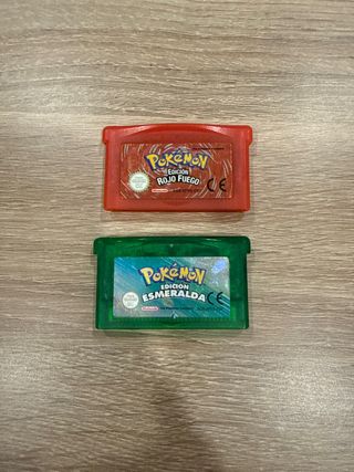 Dos cartuchos de videojuegos Pokémon para Game Boy Advance. - Pokémon Edición Rojo Fuego 30€ - Pokémon Edición Esmeralda 30€ Si se cogen ambos el pack está por 50€