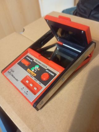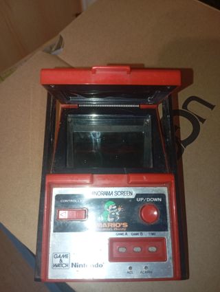 Consola portátil clásica de Nintendo. - Modelo: Game & Watch Panorama Screen. - Juego: Mario's Bombs Away. - Diseño con pantalla panorámica.