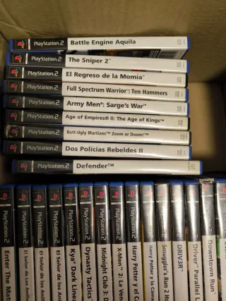Lote de juegos para PlayStation 2 en perfecto estado, edición Pal España. - Battle Engine Aquila - The Sniper 2 - El Regreso de la Momia - Full Spectrum Warrior: Ten Hammers - Army Men: Sarge's War - Age of Empires II: The Age of Kings - Butt-Ugly Martians: Zoom or Doom! - Dos Policías Rebeldes II - Defender - Enter The Matrix - El Señor de los Anillos: El Retorno del Rey - El Señor de los Anillos: La Tercera Edad - El Señor de los Anillos: Las Dos Torres - Kya Dark Lineage - Dynasty Tactics - Midnight Club 3: DUB Edition Remix - X-Men 2: La Venganza de Lobezno - Harry Potter y el Cáliz de Fuego - Harry Potter y la Cámara Secreta -