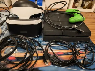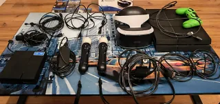 Precio negociable, con posibilidad de adquirir artículos por separado. Consola PlayStation 4 modelo original con gafas de Realidad Virtual, todos los accesorios necesarios, todos los cables y 13 videojuegos. Espacio 1 TB. - Incluye mando verde con cable. - Dos mandos de movimiento. - Cámara PlayStation. - Cables de conexión + 2 cables HDMI extra original. - 13 videojuegos PlayStation 4 originales.