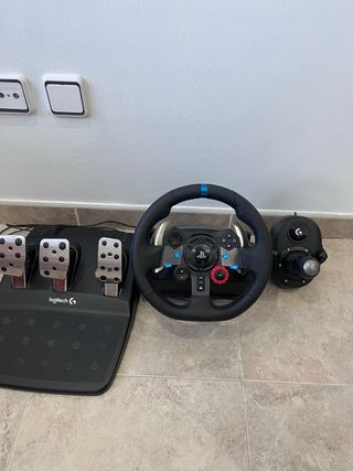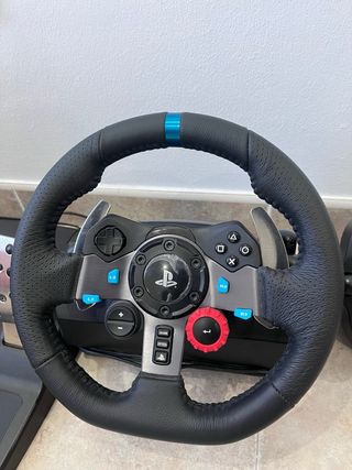 Volante Logitech G29 con pedales y palanca de cambios. - Volante de cuero. - Pedales de acero inoxidable. - Palanca de cambios manual de 6 velocidades sin estrenar - Soporte para montaje de todo con diferentes alturas Compatible con ps4/5 y pc