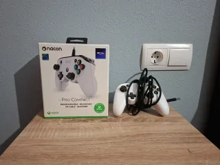 Mando Nacon Pro Compact para Xbox en color blanco. Diseñado para una experiencia de juego cómoda y personalizable. - Mando programable. - Diseño ergonómico. - Cable de 3 metros. - Sonido 3D.