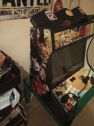 Preciosa máquina recreativa de Dragon Ball Z, en perfecto estado. Es una pieza única para cualquier fanático. - Diseño personalizado con imágenes de Dragon Ball Z. - Incluye dos joysticks y botones de acción. - Pantalla en buen estado. - Estructura robusta y bien cuidada.