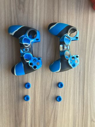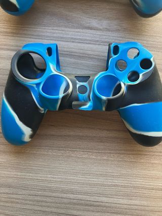 Protege tus mandos de PS4 con estas fundas y grips. - Fundas de silicona con diseño camuflaje azul, negro y blanco. - Incluye 4 grips para los joysticks.