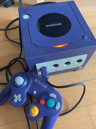 Consola clásica Nintendo GameCube en color morado, con su mando original. Se vende solo CONSOLA y MANDO. - Incluye consola. - Incluye mando.