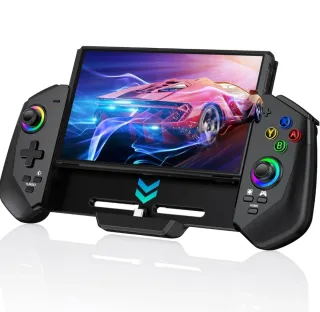 Mando ergonómico diseñado para Nintendo Switch y Switch OLED. Cuenta con iluminación RGB personalizable y función turbo. - Compatible con Nintendo Switch y Switch OLED. - Iluminación RGB. - Función Turbo. - Diseño ergonómico.