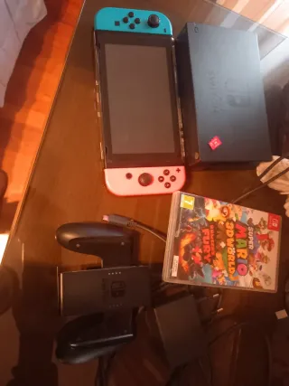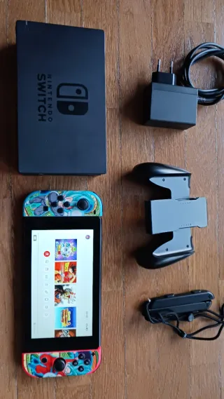 Consola Nintendo Switch con Joy-Cons en azul y rojo. Ideal para jugar en casa o en movimiento. - Incluye mando tanto para poner los joysticks como mando pro aparte con leds. - Incluye base de carga. -Incluye tarjeta de memoria de 6gb externos -Incluye funda. -Incluye 2 mandos aparte originales -Incluye 2 juegos de tarjeta y un código para fornite. Está en perfecto estado precio negociable.