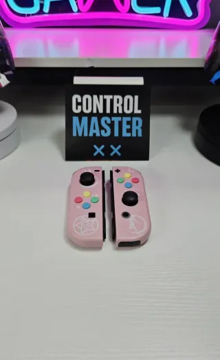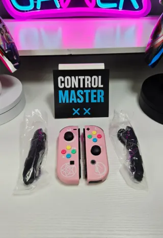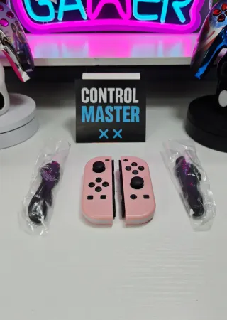 Mandos para Nintendo Switch en color rosa. Cuentan con iluminación RGB. - Correas de sujeción de Regalo. - Incluye dos mandos. - Color rosa. - Iluminación RGB.