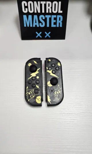 Mandos para Nintendo Switch con un diseño especial de Pikachu y rayos. - Correas De Sujeción de regalo. - Diseño temático de Pokémon. - Color negro con detalles amarillos.